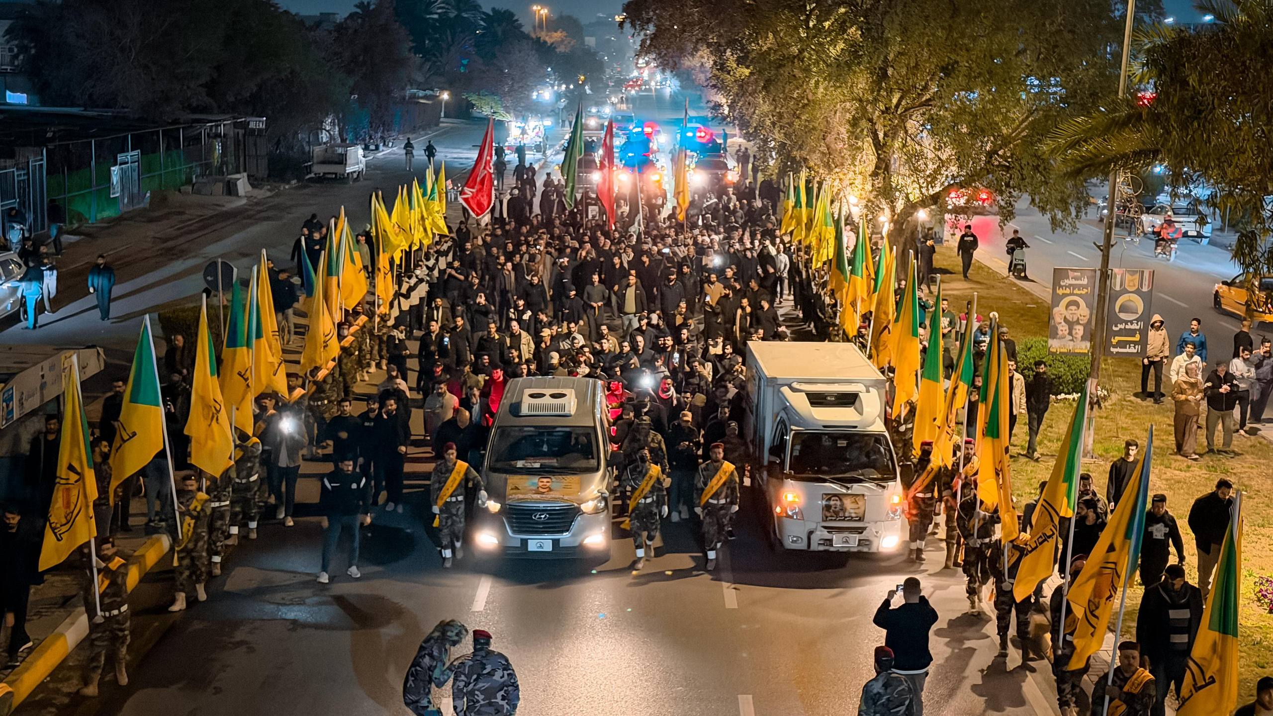 بالصور.. تشييع شهداء الحشد الشعبي الذين طالهم العدوان الصهيوأمريكي الغادر في معسكر صقر ببغداد.#صائمون_ثابتون#هيئة_الحشد_الشعبي#المديرية_العامة_للإعلام