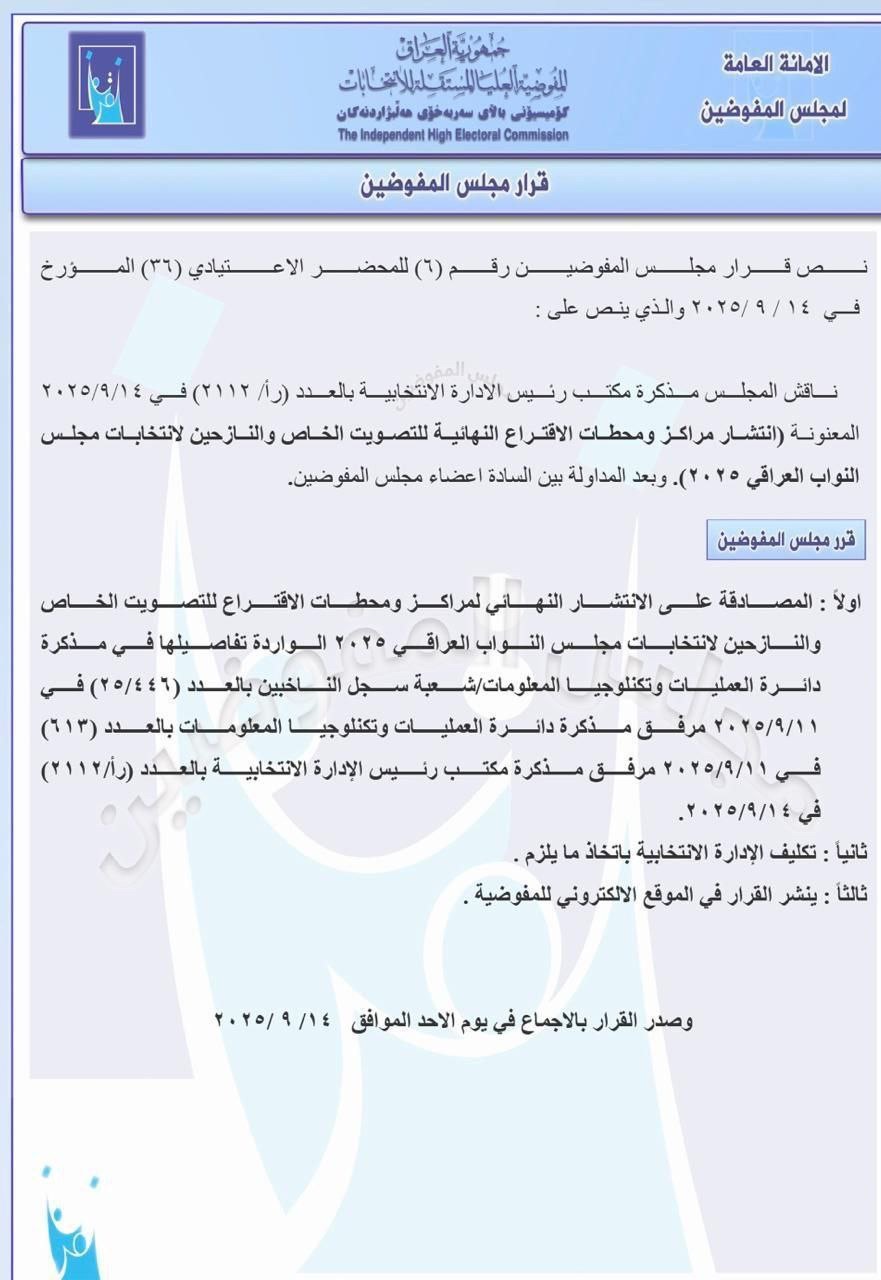 🎥 مجلس المفوضين يصادق على الانتشار النهائي للتصويت العام والخاص والنازحين.