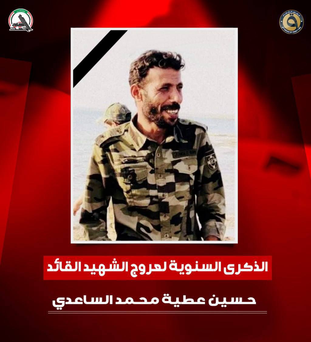 في الذكرى السنوية لعروج الشهيد القائد حسين عطية محمد الساعدي، نقف بخشوعٍ وإجلال أمام سيرة رجلٍ قدّم روحه فداءً للوطن والمقدسات، وسجّل اسمه بدمه الطاهر في سجل الخالدين، ليكون واحداً من رجالات اللواء 313 في الحشد الشعبي، الذين حملوا أمانة الدفاع عن العراق في أصعب المراحل وأخطرها.