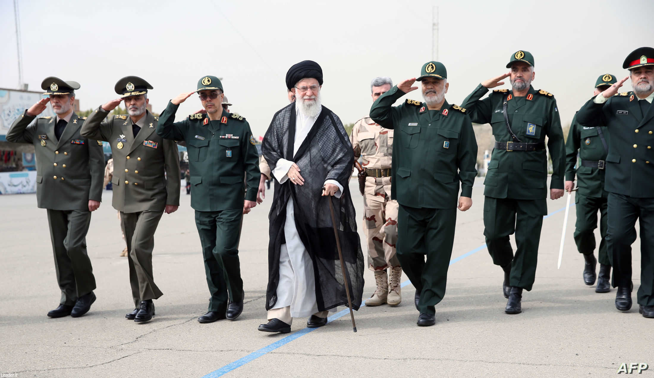 A handout picture provided by the office of Iran's Supreme Leader Ayatollah Ali Khamenei on October 13, 2019, shows him taking part in a graduation ceremony for Iran's Islamic Revolutionary Guard Corps (IRGC) cadets at Imam Hussein University in Tehran. (Photo by STRINGER / KHAMENEI.IR / AFP) / === RESTRICTED TO EDITORIAL USE - MANDATORY CREDIT "AFP PHOTO / HO / KHAMENEI.IR" - NO MARKETING NO ADVERTISING CAMPAIGNS - DISTRIBUTED AS A SERVICE TO CLIENTS ===